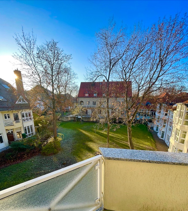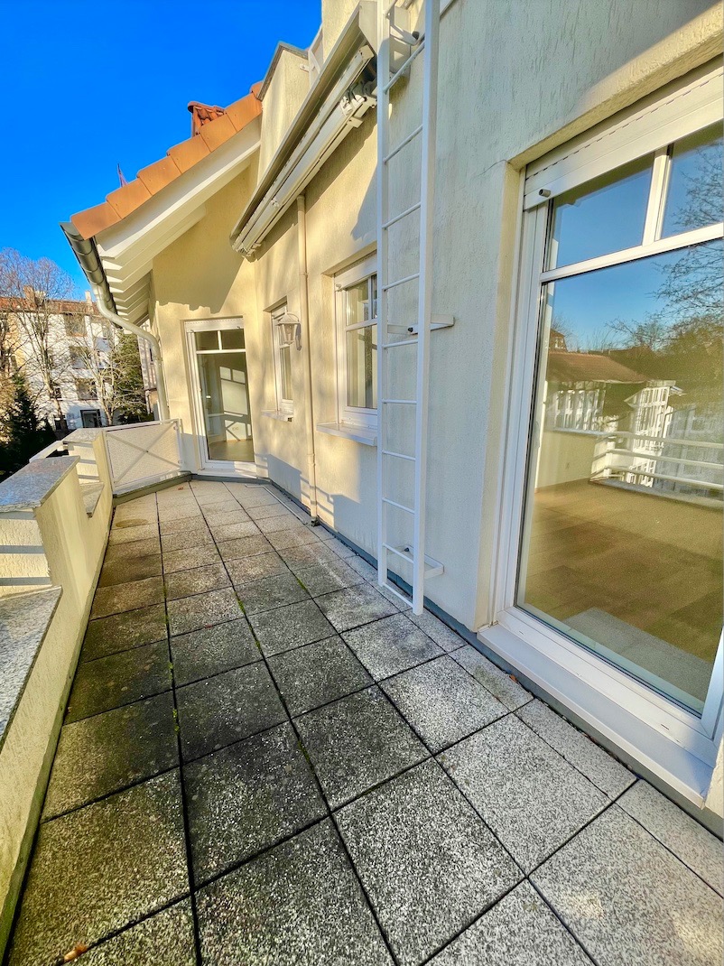 Der ca. 12qm Balkon ist nach Süden ausgerichtet und ist von dem Wohnzimmer und den Schlafzimmern zu begehen.