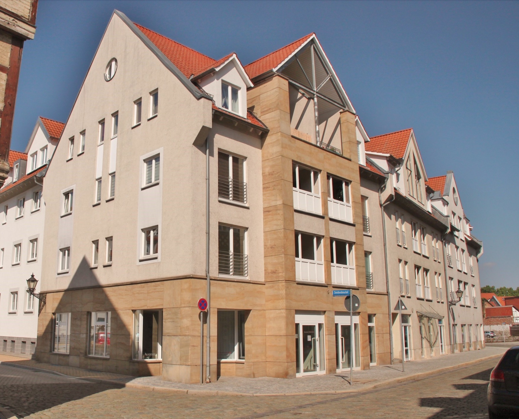 Die moderne Wohnanlage, mit insgesamt 48 Wohneinheiten befindet sich in der Bakenstraße/Seidenbeutel und fügt sich wunderbar in das Bild der Halberstädter Altstadt ein.