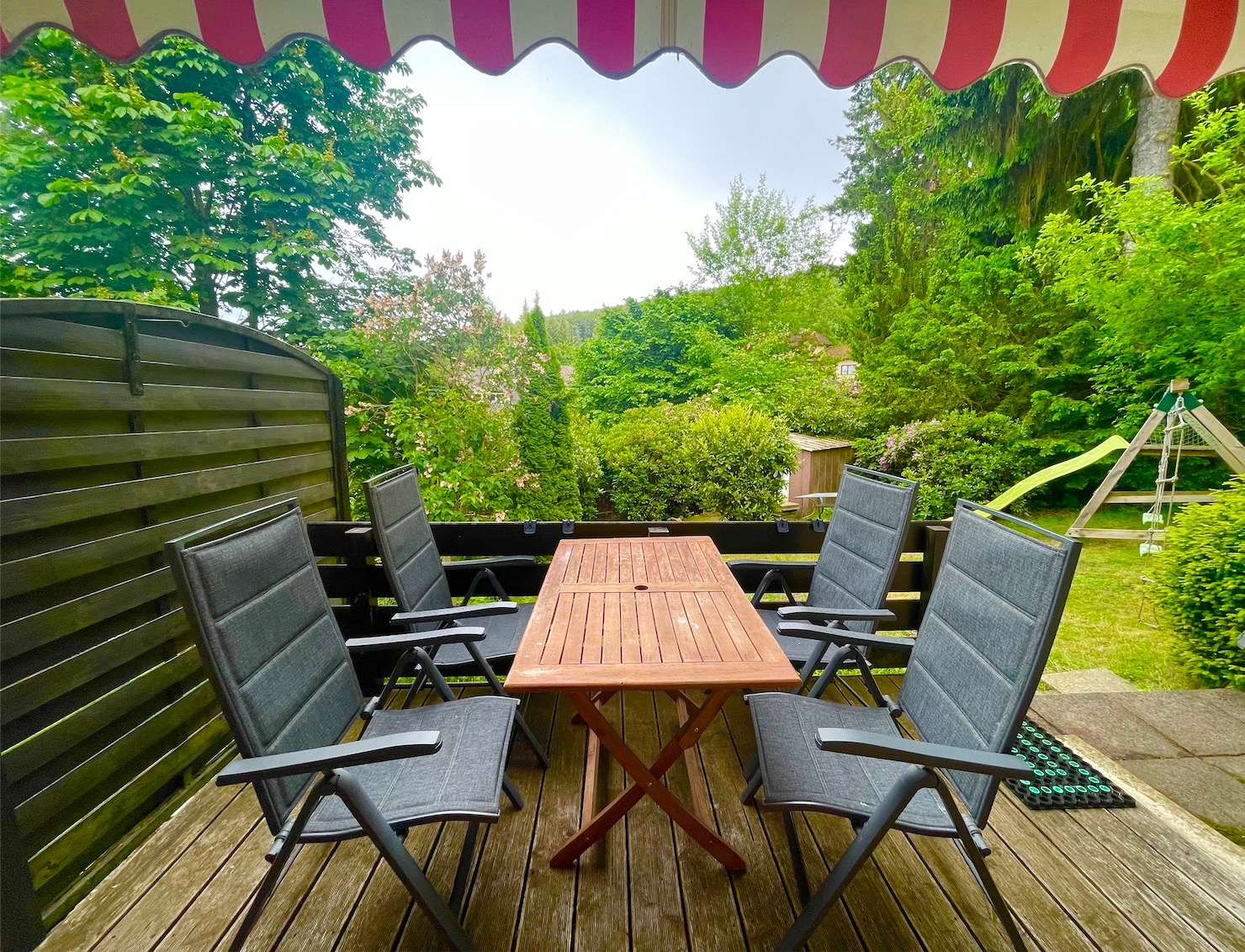 Dieser Garten ist direkt von der Terrasse an der Wohnung zu erreichen und bietet mit seiner Waldnähe ein großes Erholungspotential.